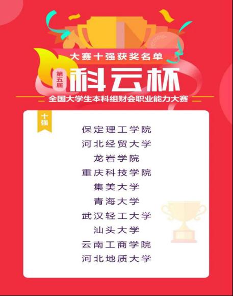 第五届“科云杯”全国老员工本科组财会职业能力大赛十强名单