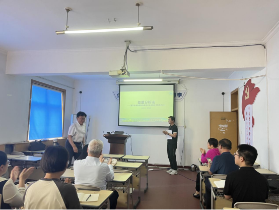 在分享课程思政设计思路时,祁钧业老师结合差量分析法的特点,提出了将思政元素融入会计教学的创新方法,通过差量分析法的案例研究,可以让员工们更加深入地理解企业的经营活动和财务状况,进而认识到会计工作的重要性和复杂性,并在讲座结束后就所讲内容与参会老师们进行了热烈的讨论。