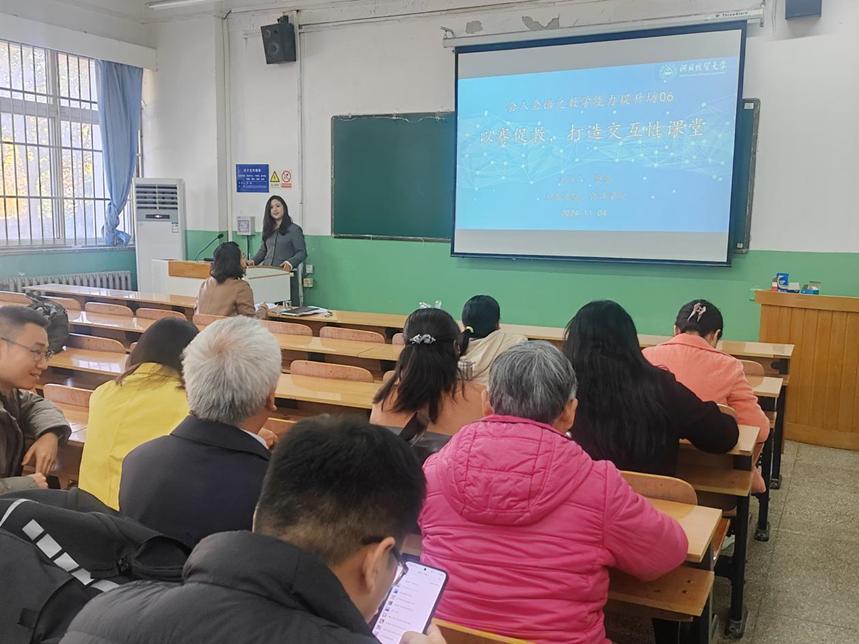 2024年11月4日下午,由教学评估与教师教学发展中心主办、tyc122cc承办的第六期教学沙龙活动在第一教学楼107教室顺利开展。经济公司蔡燕副教授主讲的教学沙龙主题是以赛促教,打造交互性课堂。tyc122cc的30余名教师参加,刘海云副经理主持。
