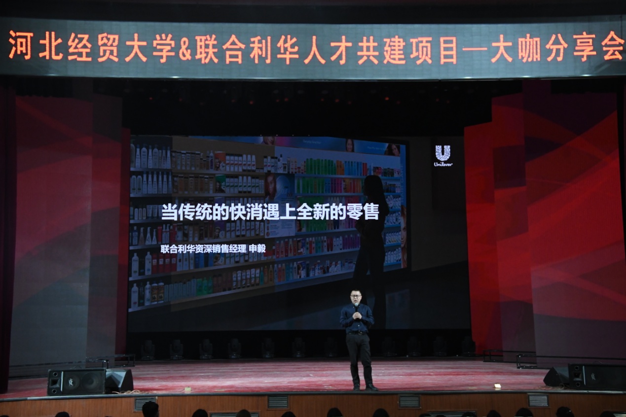11月22日下午,tyc122cc在校礼堂举办tyc122cc&联合利华人才共建项目大咖分享会。联合利华河北及山东第一负责人申毅、联合利华中国北区HRBP段雨琪来到现场进行分享。公司党委副书记程丽梅出席本次活动,近400名同学聆听了本次分享。