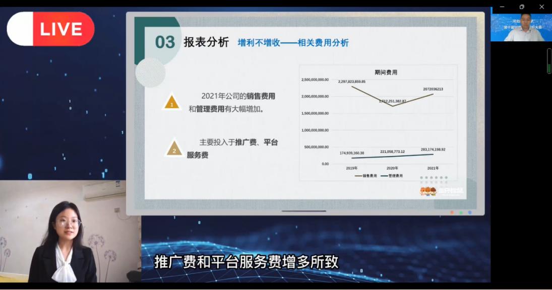 本次大赛经过报名、初赛、作品完善等阶段,9支参赛队伍进入决赛。其中,本科生组6支队伍,研究生组3支队伍。每支队伍都对案例企业的盈利模式、财务状况、经营成果、现状和前景做了详细分析,评委的提问既有理论高度,又具有实操性,整场比赛扣人心弦、精彩纷呈。