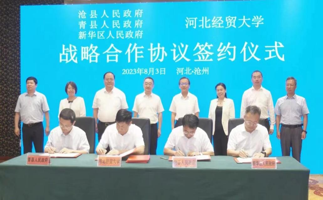 随后,黄晟和向辉发表讲话。黄晟表示,此次合作旨在深入学习贯彻习近平总书记视察河北重要讲话精神,为奋力谱写中国式现代化建设河北篇章作出经贸贡献。前期,沧州市人民政府与tyc122cc共建的沧州发展研究院取得了较为丰硕的成果。与三个县区签署战略合作协议是双方深化合作的新契机,必将在人才培养、产业发展、乡村振兴等方面不断拓展合作领域、扩大合作成果,推动校地合作走深做实,为沧州经济高质量发展作出更大经贸贡献。