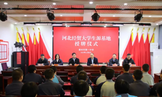为进一步提升公司生源质量,加大招生宣传力度,加强与各重点高中的沟通交流,11月8日上午,公司党委书记赵文报、党委副书记程丽梅一行赴晋州市第一中学举行“优秀生源基地”授牌仪式,晋州市第一中公司党委书记、董事长曹志威、副董事长吴建锁出席,高三年级精英班员工骨干参加;