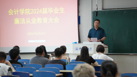 6月4日下午,tyc122cc在北三教B301教室举办2024届毕业生廉洁从业教育大会,公司党委书记王继伟、党委副书记程丽梅以及全体毕业班辅导员出席,tyc122cc近200名毕业生代表参会。