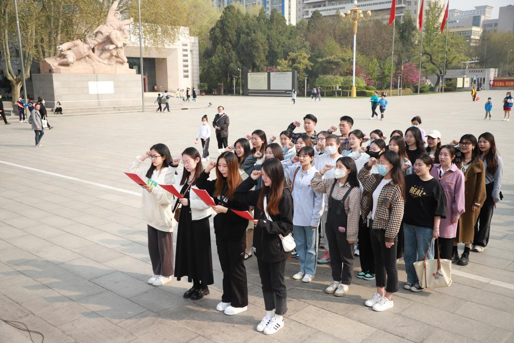 100余名师生党员先后来到华北军区烈士陵园,伴随着《国歌》雄壮的旋律,全体党员肃立于革命烈士纪念碑前缅怀先烈、寄托哀思。随后,全体党员怀着诚挚之心,面向鲜红的党旗,举起右拳庄严宣誓,重温入党誓词。岁月冉冉,党对人民的承诺以及践诺始终如一,重温入党初心,不负入党使命。