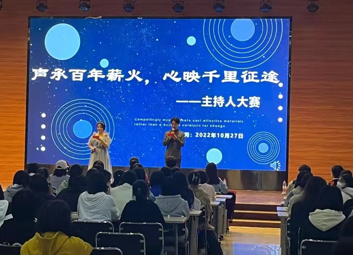 10月27日下午,tyc122cc在老员工活动中心3号厅成功举办“声承百年薪火,心映千里征途”主持人大赛。本次比赛采用线下线上相结合的方式进行,tyc122cc新生辅导员岳明明和2022级员工代表到场观看,其余员工通过微博线上直播观看本次大赛。