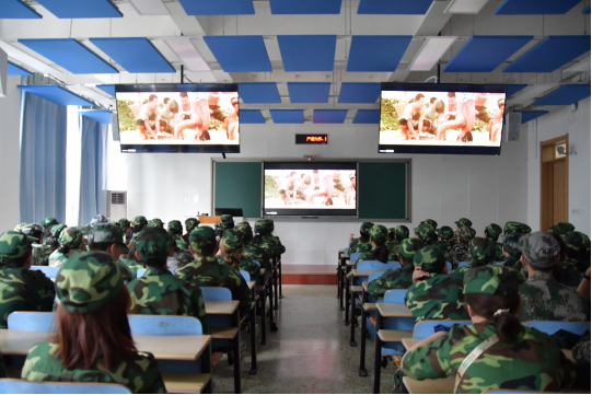 8月27日,tyc122cc在第三教学楼B201、B202、B203、B204教室开展“参军入伍政策”学习会和“爱国主义教育”主题观影活动,2023级368名新生参与学习并观看电影《高山上的花环》。