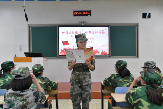 首先,由军训教官王佳伟、蔡林建、熊思遥、聂茂林带领同学们学习河北省高校老员工参军入伍的相关政策规定,并结合自身参军入伍的经验为同学们介绍了参军入伍的流程、基本待遇、经济待遇、政治待遇(发展前途)和老员工士兵退伍优待政策。