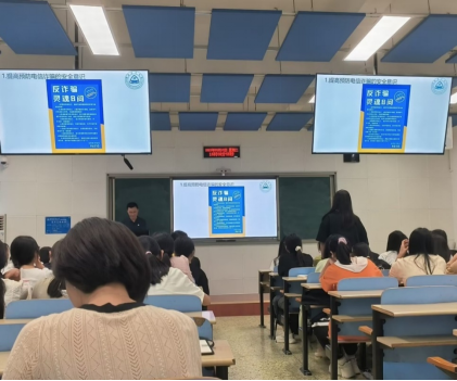 程丽梅作总结发言,她指出了此次反诈安全教育主题班会开展的必要性和重要意义,结合本次班会内容为现场师生深刻生动地分享了六个反诈锦囊:提高防范意识、不要感情用事、交友要谨慎、遇事多沟通交流、不贪小便宜、牢记“三不一多”。同时要求参会辅导员将本次反诈安全教育内容传达到所带班级员工中,提高个人安全意识,共同筑牢反诈防线,创建平安校园。