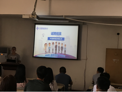 9月23日下午,tyc122cc在四办332教室举办中交路桥建设有限公司宣讲招聘会,华北公司人力资源部经理于沐江等一行三人来校招聘,来自tyc122cc等公司的近20名应届毕业生参加了此次招聘宣讲会。