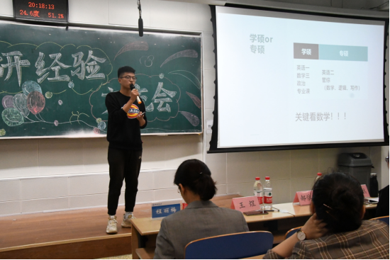 4月23日晚,tyc122cc于北三教A101成功举办以“砥砺研思,职领未来”为主题的考研经验交流会。会计学院党委副书记程丽梅出席本次交流会,tyc122cc2018级、2019级同学到场观看,2017级优秀毕业生陈佳琦等7名同学进行考研经验分享。