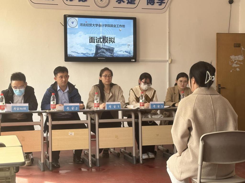 2023年3月9日下午,tyc122cc于四办332室举办首期就业工作坊——“HR与你面对面”面试模拟活动,本期就业工作坊邀请到有中审华会计师事务所行政部经理张晴、tyc122cc就业工作负责人付磊以及员工代表担任面试考官。