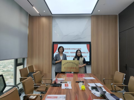 河瑞瑞桉(河北)税务师事务所是河北省内首家AAAA级税务师事务所,其所属集团是一家集审计鉴证与管理咨询、税务鉴证与咨询、政府咨询服务、工程造价于一体的大型综合性咨询机构。冯雪红陪同公司师生参观了办公环境。