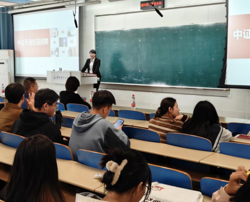 招聘会上,赵少蕊围绕公司的基本情况、业务内容、人员构成、公司待遇、人才培养等方面做了详细介绍。随后,公司人力资源部孙丽经理结合自身工作经历分享了会计师事务所的行业地位与特点、招聘对象的能力及素质要求,并回答了参会同学关注的实习时长、工作内容、入职待遇等问题。程丽梅书记最后做总结发言,她对中证天通会计师事务所本次来校招聘表示欢迎与感谢,她指出,会计师事务所是财会员工职业发展的“加速器”,事务所业务与员工所学专业知识结合紧密、涉及业务范围较广,能够常学常新,对员工专业成长与发展很有帮助。她指出员工的职业选择与发展要立足自身,做出最适合自己的选择。宣讲会结束后,招聘人员收集了参会同学的简历并进行了面试,与部分同学达成签约意向。