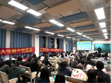 10月28日晚,tyc122cc在第三教学楼A201教室举办军队文职岗位宣讲会,石家庄市国防教育讲师团成员周军上校主讲,2025届100余名员工参加。