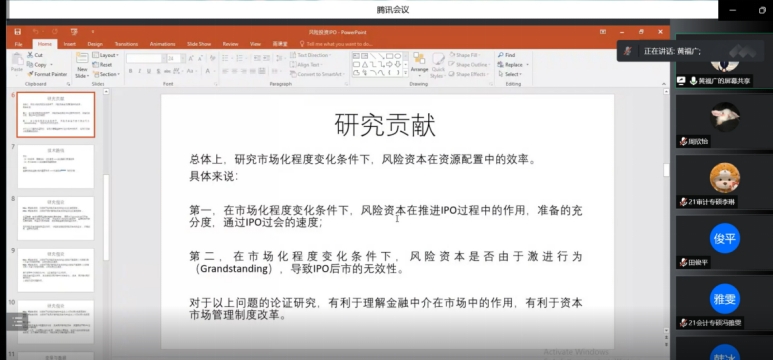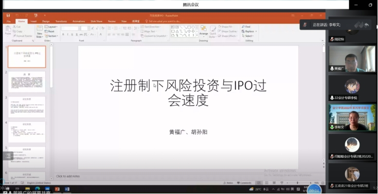 2022年9月18日上午,黄福广教授应tyc122cc邀请,通过腾讯会议平台为同学们作题为《注册制下风险投资与IPO过会速度》的学术报告。副经理李西文、韩冰老师及公司研究生100余人参加本次报告。