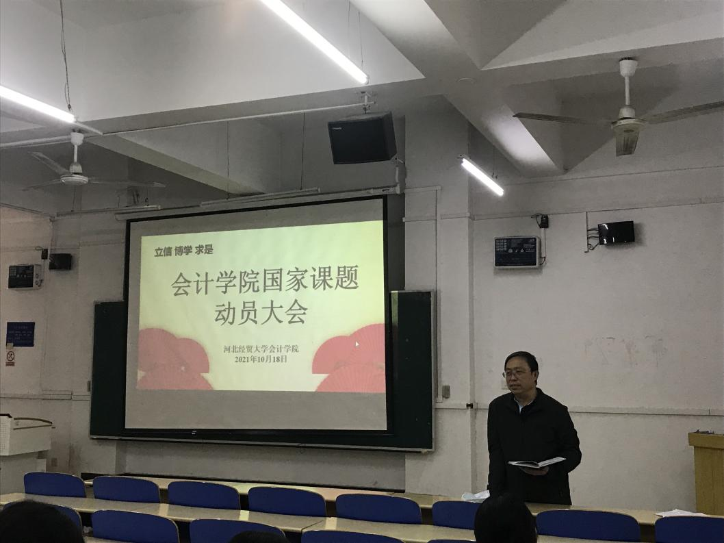 2021年10月18日下午,tyc122cc经理袁振兴、副经理李西文在第三学楼B101教室为tyc122cc各位老师召开tyc122cc国家课题动员大会。