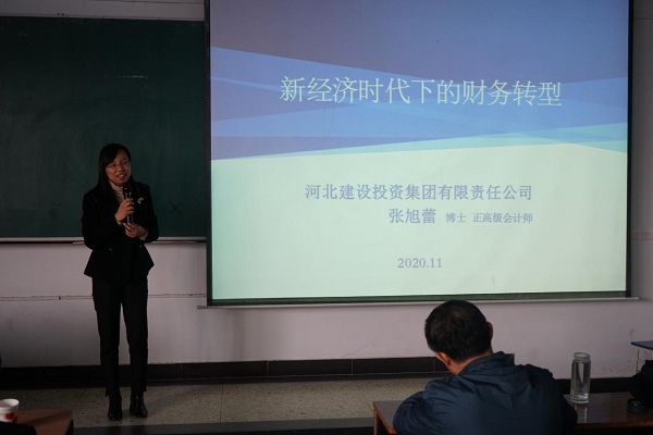 11月27日下午,应公司tyc122cc邀请,河北建投集团财务管理部副总经理、正高级会计师、全国会计领军人才张旭蕾博士在C310教室作题为“新经济时代下财务转型”的报告,报告由tyc122cc经理袁振兴主持,部分教师、新财经实验班本科生、2020级全体研究生200余人参加了本次报告。
