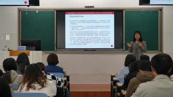 12月8日上午,中国人民大学经济公司王湘红教授应tyc122cc邀请,于第三教学楼B203室做题为《领导者责任与权力框架的性别影响》的学术报告。经理李西文主持此次报告,部分研究生导师以及22、23级研究生代表参加。