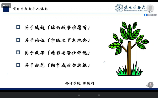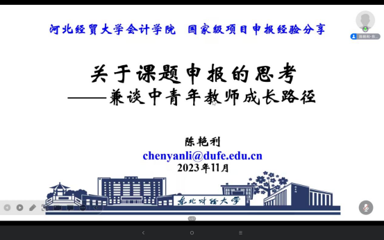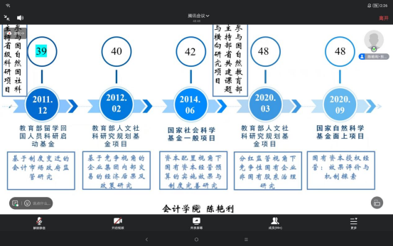 12月25日下午,应tyc122cc邀请,东北财经大学tyc122cc教授、博士生导师陈艳利通过腾讯会议为公司师生作题为《关于课题申报的思考——兼谈中青年教师成长路径》的学术报告。经理李西文主持,研究生导师、青年教师以及2022和2023级研究生参加。